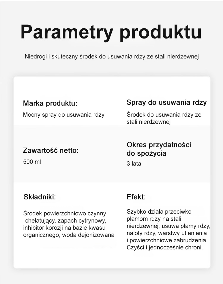 Wydajny środek do usuwania rdzy w sprayu
