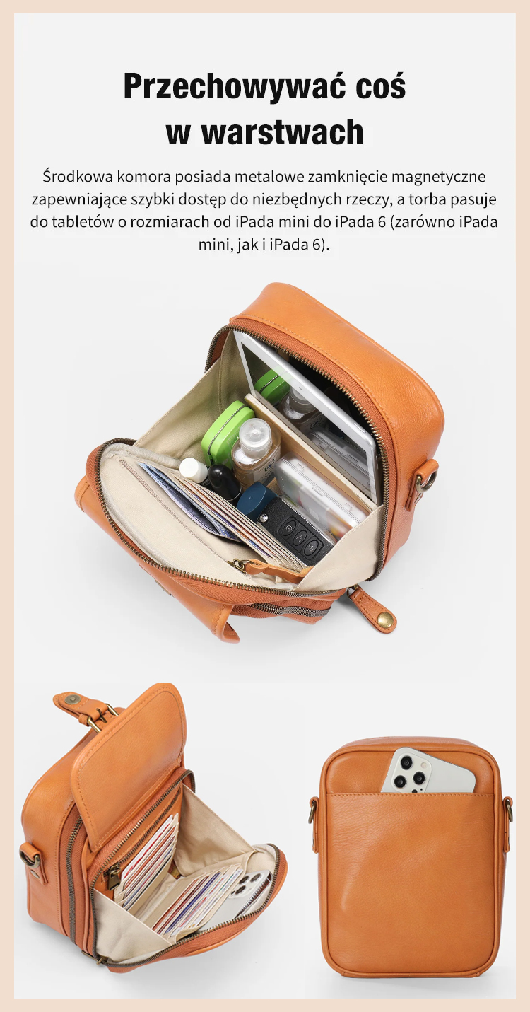 Vintage dwuwarstwowa torebka listonoszka o dużej pojemności