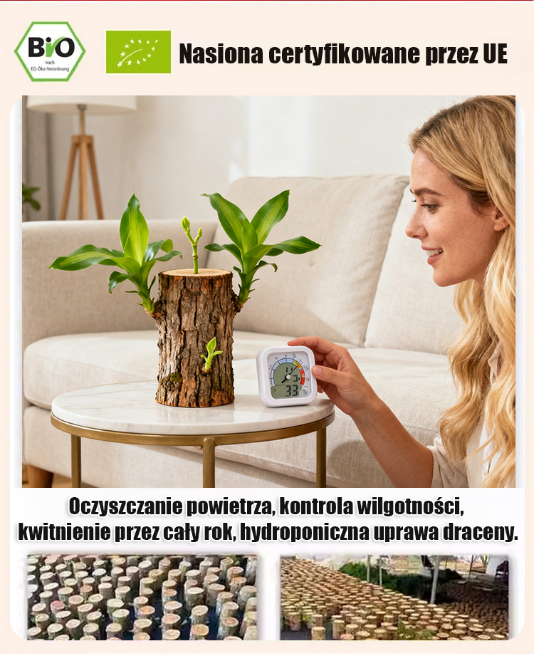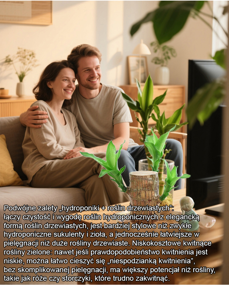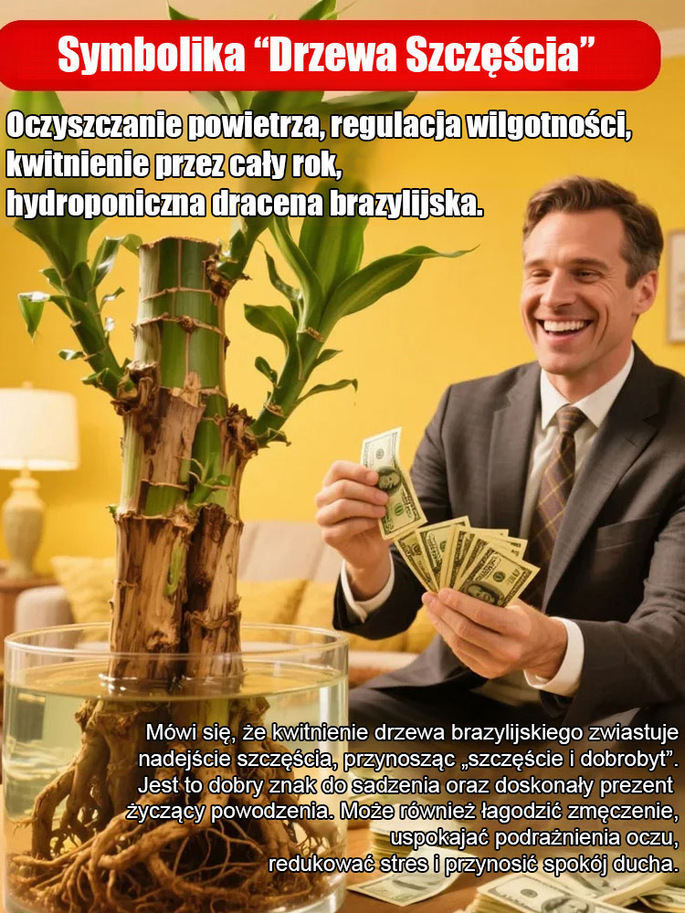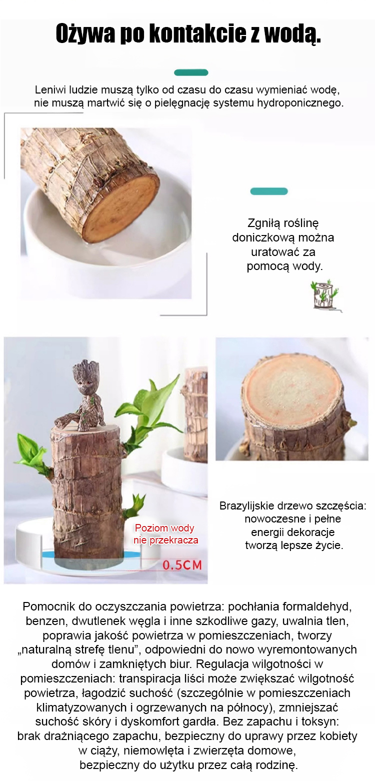 Oczyszczanie powietrza, regulacja wilgotności, hydroponiczna brazylijska roślina szczęścia.